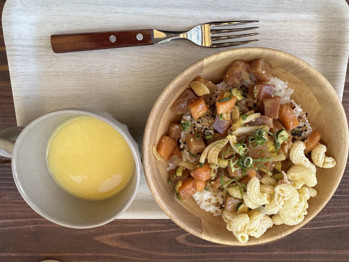 Vera gra offers a diverse menu that tantalizes the taste buds. Start your meal with their Garlic Steak Set, a succulent 150g piece of beef grilled to perfection and served with the café’s original sauce for just JP¥1,500. For those looking to savor the fresh flavors of the ocean, the Poke Bowl is an excellent choice, combining fresh tuna and salmon into a delightful, mildly spicy dish. If you're in the mood for something sweet and tangy, don’t miss the Sweet and Sour Pork Bowl, also priced at JP¥1,500, which is a customer favorite among locals.